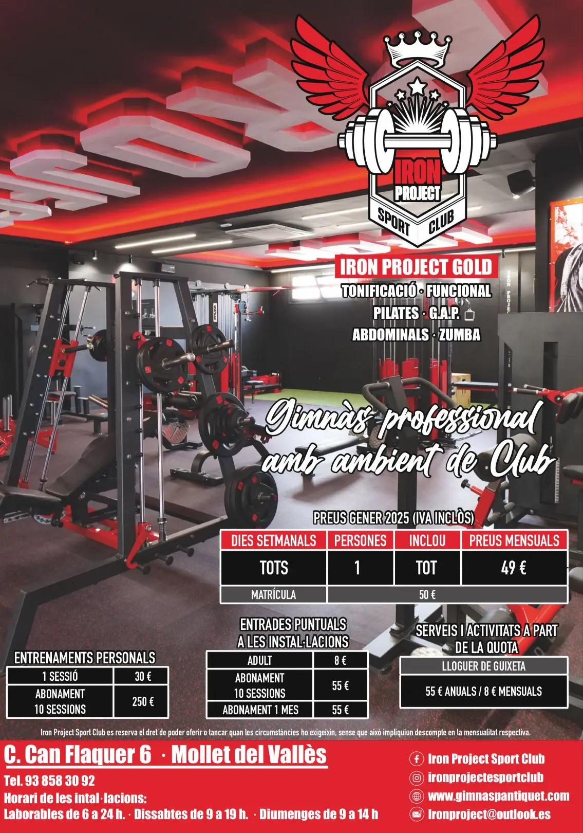 Durante este mes de junio la matrícula está a solo 15€ por pocos días, 49€ mes. Ya puedes apuntarte amplio horario los 7 días de la semana y mes de agosto.